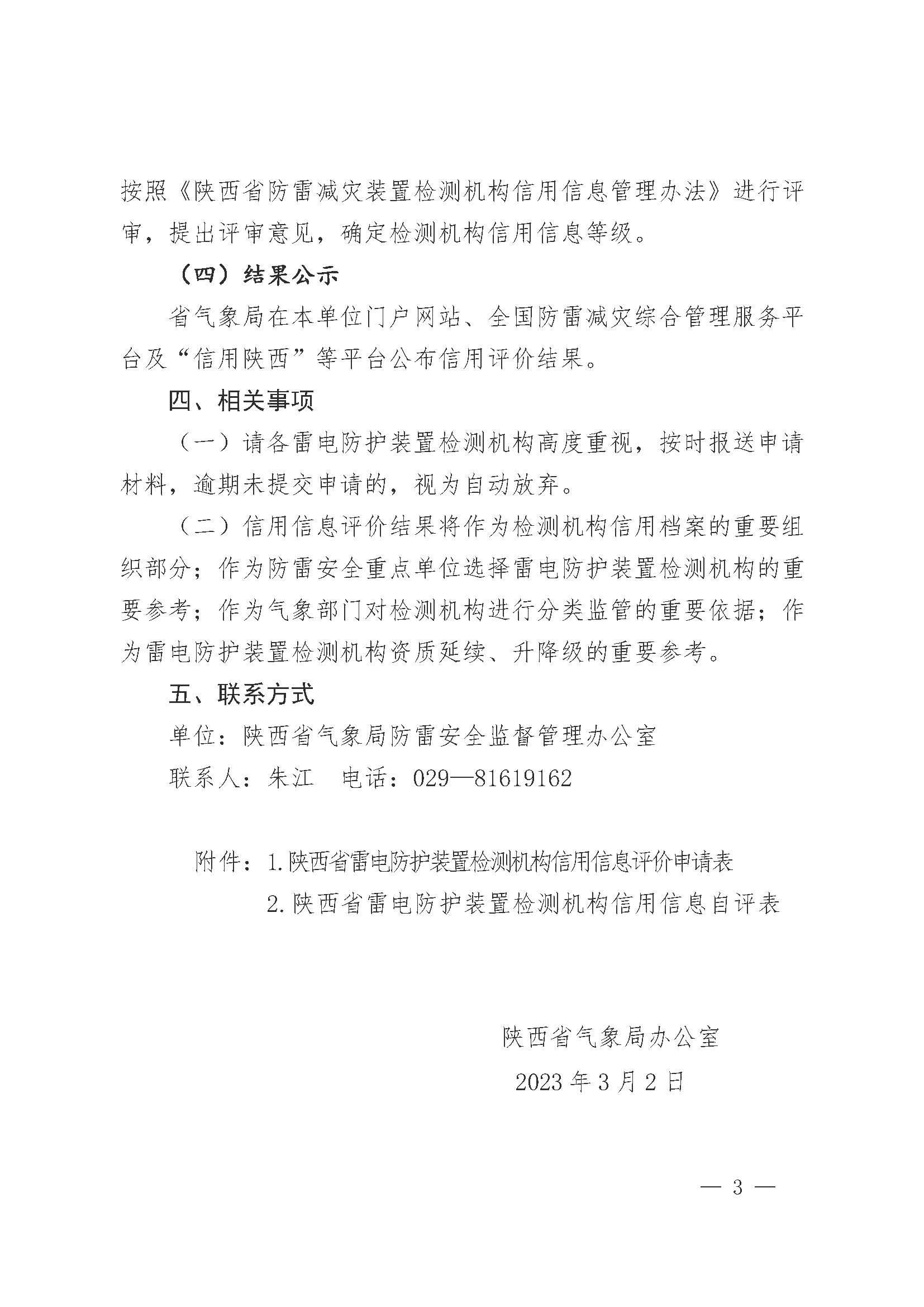 陜西省氣象局辦公室關于開展2023年雷電防護裝置檢測機構信用信息評價工作的通知